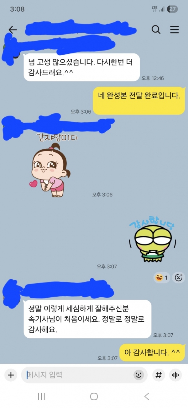 의뢰인께서도 상태가 안 좋아서 듣기 힘드셨던 파일인데 특히 중요한 부분을 추가로 찾아내 드려서 힘든 작업이었음에도 고객님께서 매우 만족해 주셔서 보람 느꼈던 하루였습니다.